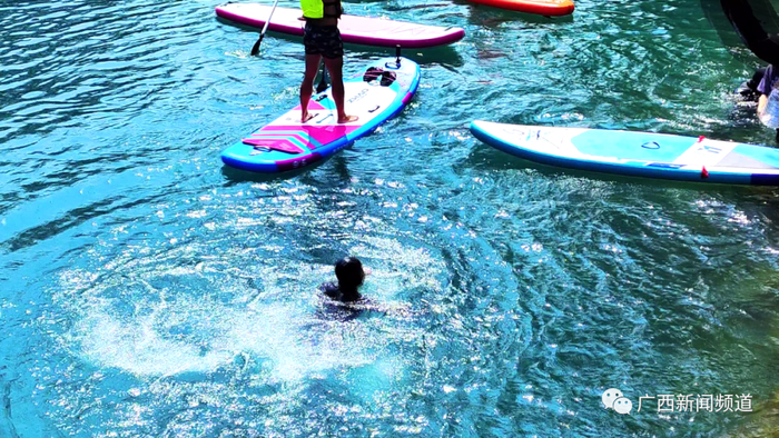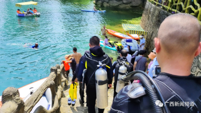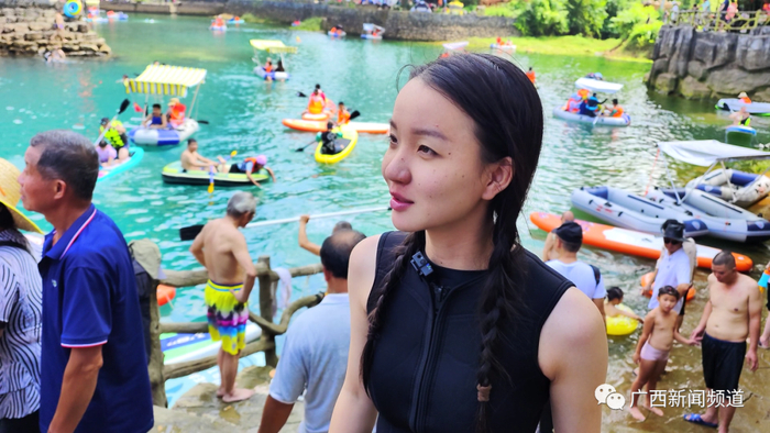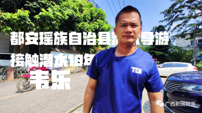 都安瑶族自治县潜水导游 韦乐:今年假期客人都批数比较多,不像往年是只有一两批,这个季节都适合潜。