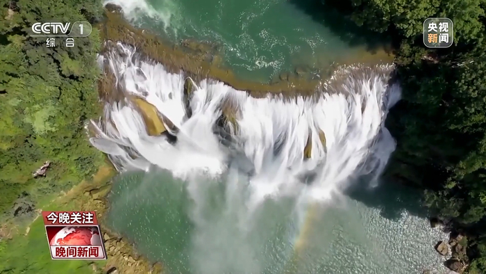 贵州的黄果树大瀑布景区这两天迎来游客最高峰。假日期间,晴空下的瀑布显得更加纯净。在夕阳的映照下,彩虹若隐若现,引得游客们流连忘返。