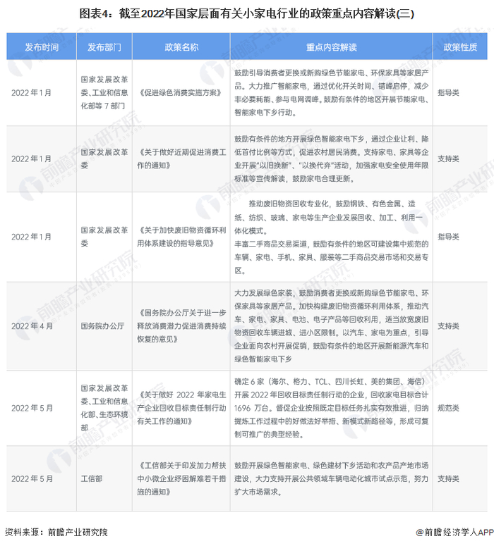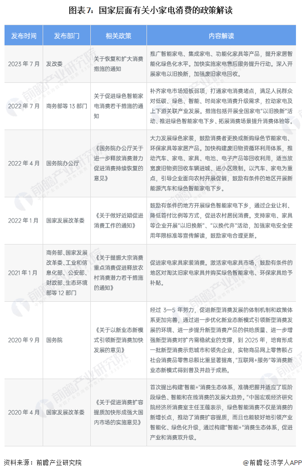 在小家电消费政策方面,“十三五”以来,国务院、国家发改委、工信部等相关部门也陆续出台相关政策促进小家电消费工作,具体内容包括促进升级消费、以旧换新、家电下乡和绿色化、智能化产品的替代消费等。