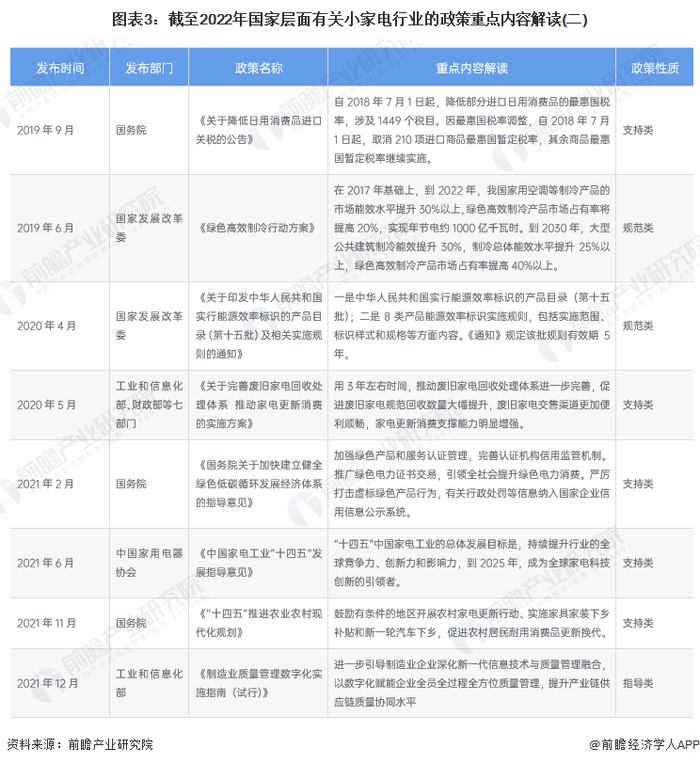 自2015年以来,国务院、国家发改委、国家能源局等多部门都陆续印发了支持、规范小家电行业的发展政策,内容涉及小家电发展质量、小家电消费、小家电技术路线和小家电关税政策等内容: