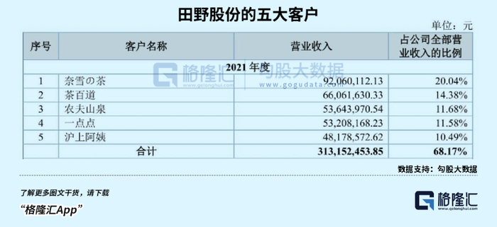 为奈雪的茶、茶百道、 沪上阿姨等品牌提供果汁的供应商——田野股份,在今年2月也成功在北交所上市,首日高开,涨幅超过20%。