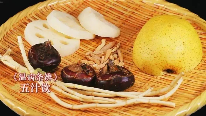 荸荠,性味甘寒有降火、补肺、凉肝、消食化痰的作用,对咽喉不适、口干舌燥等症都有较好的缓解作用。用荸荠、梨、莲藕、芦根、麦冬5种白色的食材煮成的【五汁饮】,是润肺止咳妙方,建议大家可以试一试。