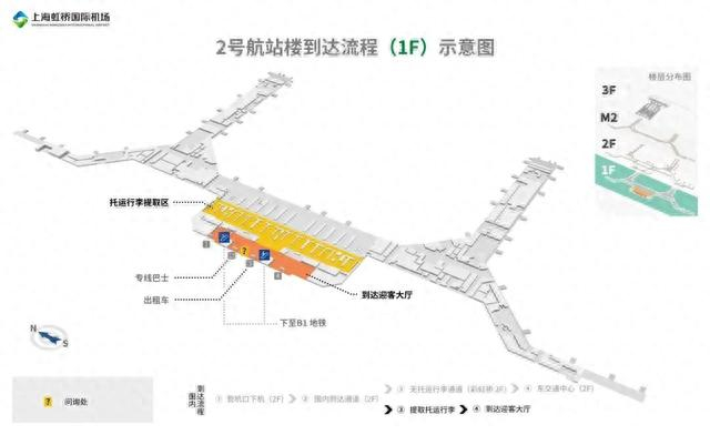 虹桥国际机场2号航站楼到达层共有2个出口,分别是:1F到达层、2F彩虹桥(无托运行李通道)。