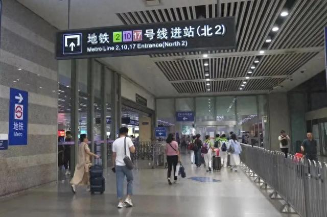 从南出站口2、南出站口3、北出站口2、北出站口3出来的旅客,可选择在虹桥火车站站乘坐轨道交通2号线、10号线、17号线。