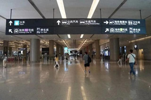 旅客抵达后,可由航站楼B1层步行至东交通中心,乘坐电梯至1楼即可到达;也可由P6或P7停车场2楼步行进入航站楼东交通中心2楼,乘坐电梯至1楼即可到达。