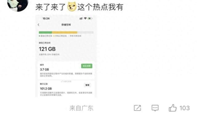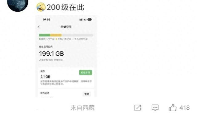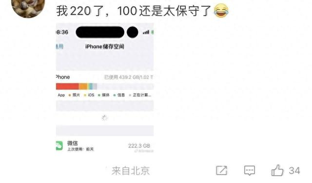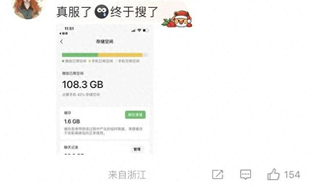 不少网友跟风晒图,微信占内存100G以上的大有人在