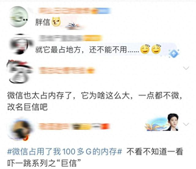 有网友吐槽微信越用越“膨胀”,应改称为“巨信”