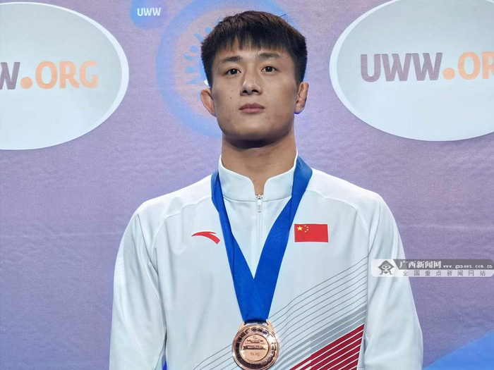 北京时间24日凌晨,广西运动员曹利国在2023年贝尔格莱德摔跤世锦赛上摘获男子古典式摔跤60公斤级铜牌,开创广西摔跤项目历史。(资料图,图源 中国摔跤队)
