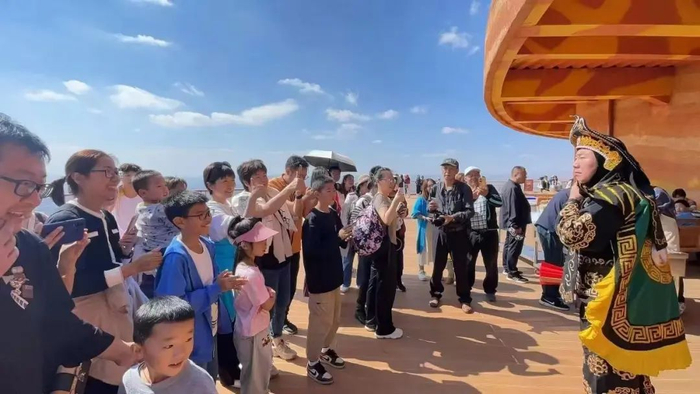 在兰州老街,以“红”为主题的古装表演展现了老街的独特魅力。众多游客漫步其中,古色古香的街道,热闹非凡的市集,在这里看表演、赏民俗、品美味,沉浸式体验了西北文化的淳朴与浪漫。在水墨丹霞景区,游客们仿佛置身于泼墨山水画之中,用最饱满的激情礼赞这个伟大时代。