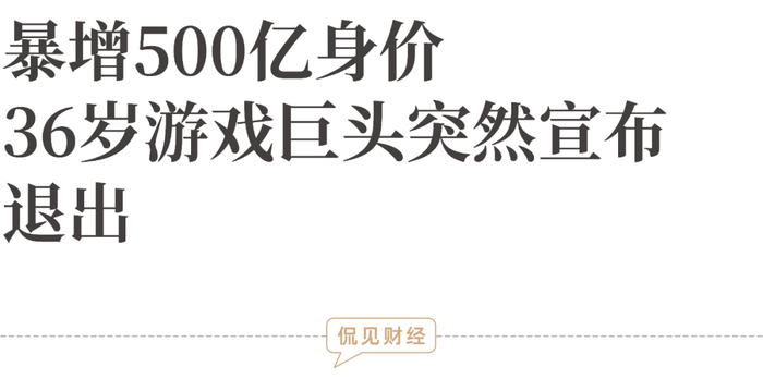 暴增500亿身价!36岁游戏巨头创始人突然宣布,退出