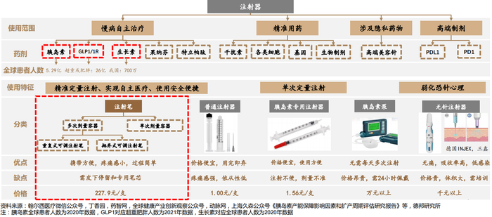 德邦证券陈铁林等人8月31日研报指出,注射笔具备精准定量注射、自主医疗、使用安全便捷核心优势,精准契合糖尿病、减重等长期用药患者人群需求,逐步成为主流注射方案。2021年重复使用注射笔约占糖尿病注射器总市场的81.69%。