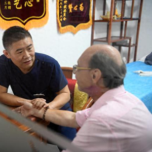 杨臣大夫正在对马可进行诊断,望闻问切是中医诊断的基本方法。