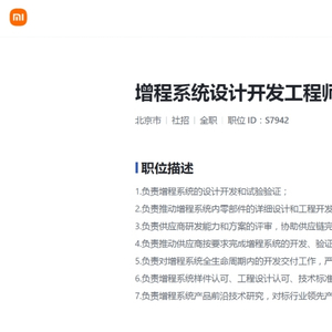 招聘平台上,小米汽车也放出了相关的研发岗位,包括:增程系统设计开发工程师、燃油系统工程师、排气系统工程师等增程式电动车相关岗位。