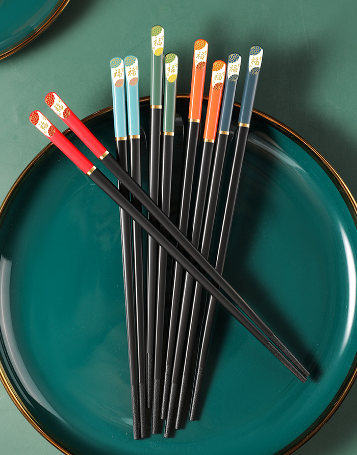 一套10双,通过颜色区分,1人1筷,不会串用,吃饭更健康卫生。