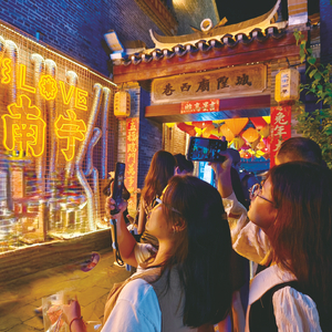 ▲游客在“三街两巷”打卡拍照 本报记者 赖有光 摄