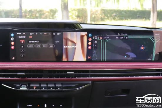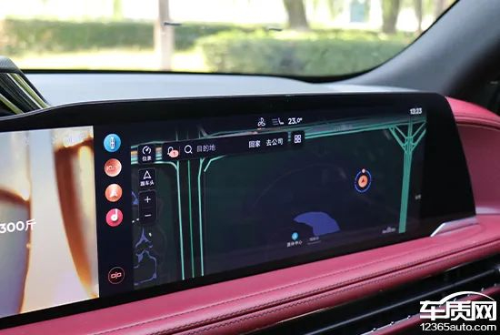 第二个亮点是超长连体屏幕,位于中控台顶端,它由全液晶仪表和贯穿中控和副驾娱乐屏的一体屏组成。其中,前者为12.3英寸液晶屏幕,后者为一整块采用4K UHD超高清分辨率的27英寸液晶屏幕,与市面上常见的连体屏有所区别。这块一体屏内集成了丰富的车机功能,并支持分屏显示和操作,机动性较强。同时,屏幕不仅显示效果细腻,操作的流畅性也值得肯定。