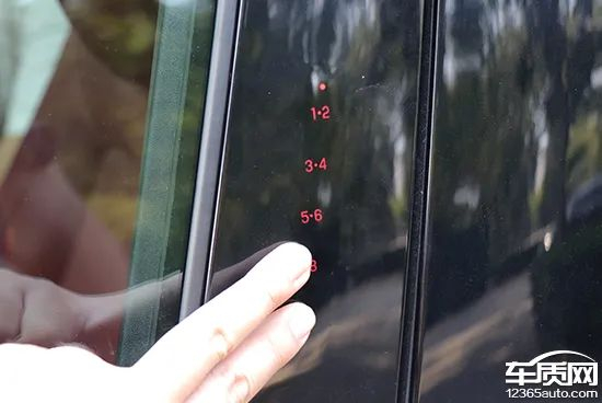 第一个亮点就是密码锁,其位于主驾驶位车门B柱外侧,与传统按键式不同,该密码锁为一块触控屏。平时不用的时候数字显示灯光会熄灭,使用时候可通过点击B柱激活密码键盘。解锁时,输入密码后即可对车门进行解锁。如果要上锁,那么需要将双指按住面板上的“7-8”“9-0”位置,即可完成锁车操作。需要注意的是,车辆的密码锁和无钥匙进入功能是两套系统,所以如果不带钥匙的话,该密码锁只能对车门进行解锁和上锁,驾驶员上车后并不能进行点火启动操作。