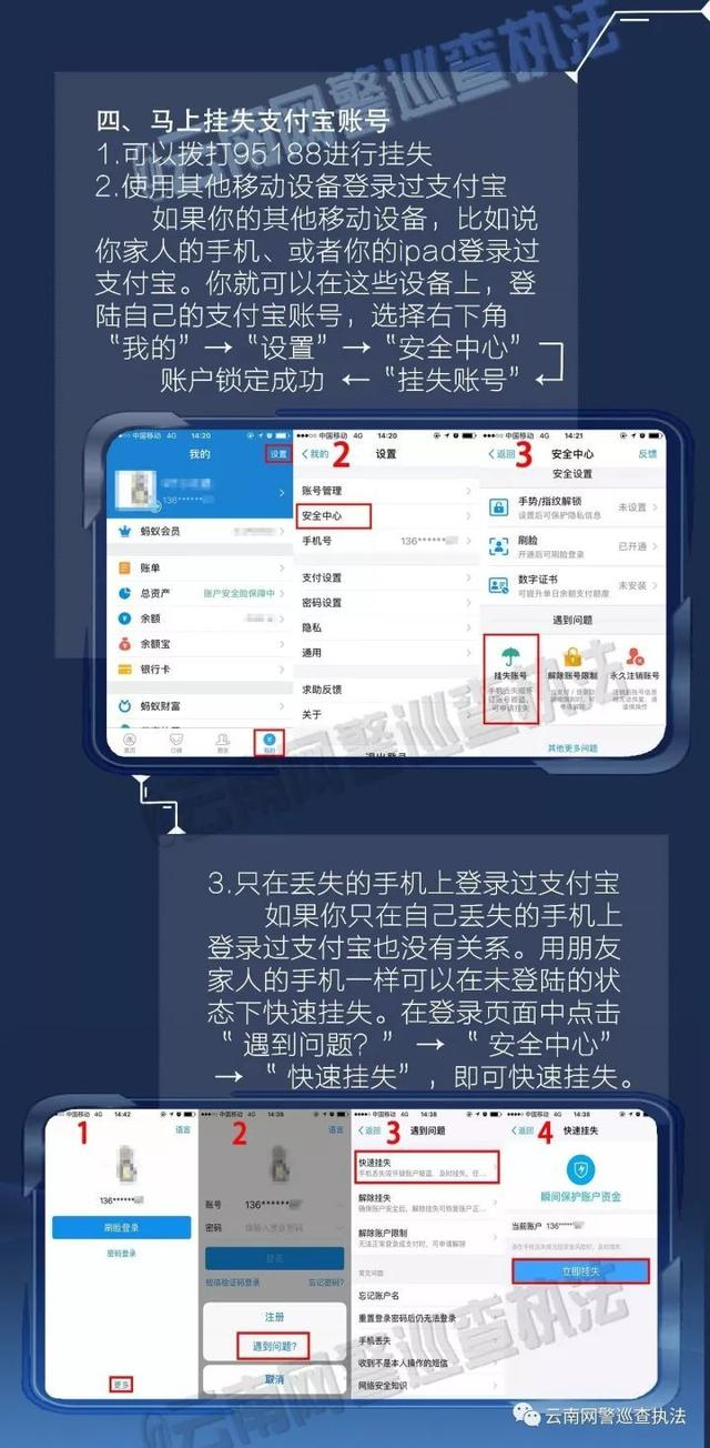 丢失手机后,第一时间将自己的手机号码停机或者挂失, 这样该手机号码的短信功能就暂时无法使用,可以暂时确保账户安全。