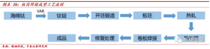 (2)国内企业目前普遍采用旋压成型工艺,首先将钛锭锻造开坯,多向锻造后再用碾环机环扎成钛环,将钛环通过旋锻机旋压成型,再进行热处理及车削加工最终完成成品。该工艺特点是无缝一体成型,辊面组织一致性好,缺点是相较于焊接成型工艺整体工序长、生产效率低、成本高。
