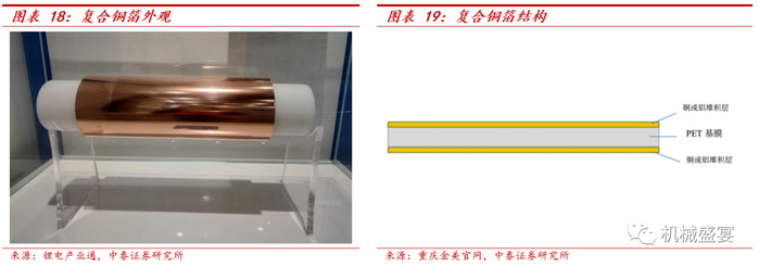 (3)减重:PET/PP材料相对于铜较轻,传统纯金属集流体占电池比重达13%,随着复合集流体重量占比降低,电池能量密度实现提升。