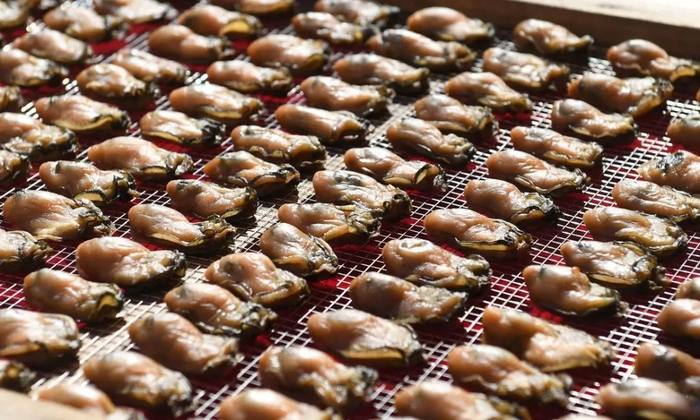 阳江蚝豉呈金黄色,油光润滑、色泽均匀。其采用程村本地鲜蚝,经过蒸煮、阳光晒干而成,过程不添加任何东西,原汁原味,很好地保留了蚝原有的鲜味。程村蚝豉呈金黄色,油光润滑、色泽均匀,散发出独特的咸香味。