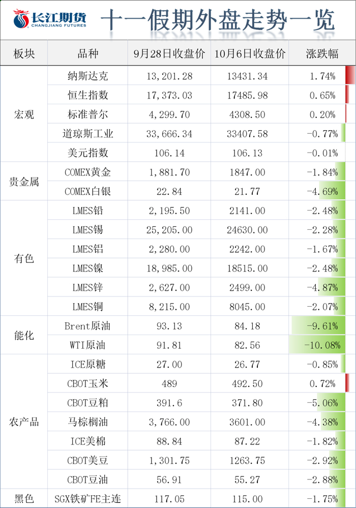 本文数据来源:华尔街见闻、同花顺iFinD,Mysteel、卓创咨询、SMM、隆众资讯、中国棉花信息网、上海钢联、中果网、博易大师、郑州商品交易所、蛋e网、大鸿门等
