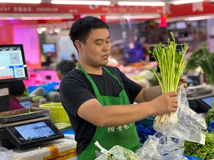 至于人气最高的,莫过于摆在摊位中央的水芹,一把把青嫩碧绿、新鲜水灵,光看着就诱人,烹饪方法也多样,马大嫂们来到摊前,总要顺手挑些买回家。市民胡女士就前来买了一把,打算搭配百叶丝炒一道清口小菜。“正好国庆假期荤菜吃多了,这几天想多吃素菜解解腻。水芹很百搭,可以炒百叶丝,也可以炒肉丝,什么都能一起烧。”
