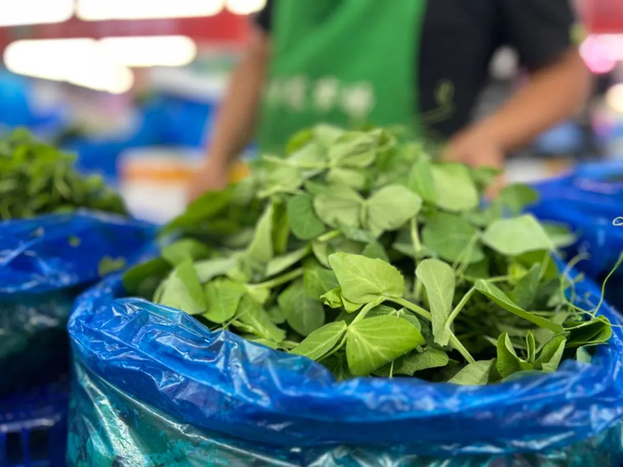 一大早,阳普国和菜市场的蔬菜摊位上,本地绿叶菜已陆续上新,迎来“神仙打架”。一大袋沉甸甸的豆苗,刚上市没几天,吃口柔嫩清香,可清炒可混搭,可上汤可蒜蓉,是上海家常饭桌上不可缺席的美味。一旁同样鲜绿的蓬蒿菜,具有特殊气味,可消食开胃,宽中理气。