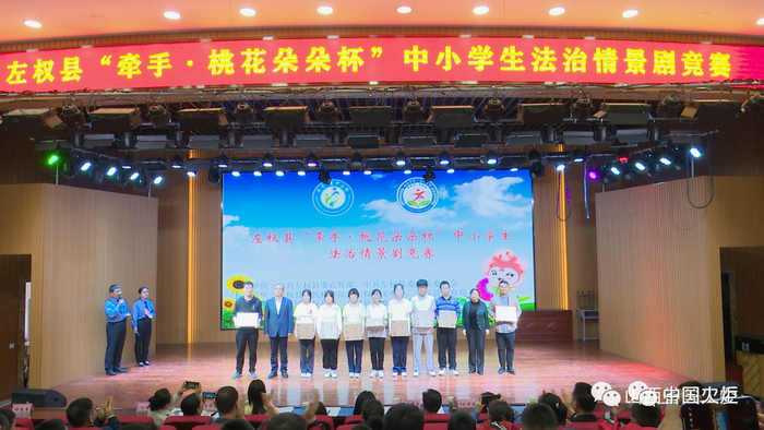 9月28日,由左权县委宣传部、政法委指导,县检察院、教育局等单位主办,县关工委、团县委、妇联等单位协办的左权县“牵手·桃花朵朵杯”中小学生法治情景剧竞赛在宏远学校举行。