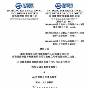 10月6日晚,海通国际和要约人海通国际控股有限公司(下称“海通国际控股”)联合发布公告称,2023年9月26日,要约人海通国际控股就前提条件获达成后根据公司法第99条以协议安排方式将海通国际证券私有化,请求董事会向计划股东提呈该建议。