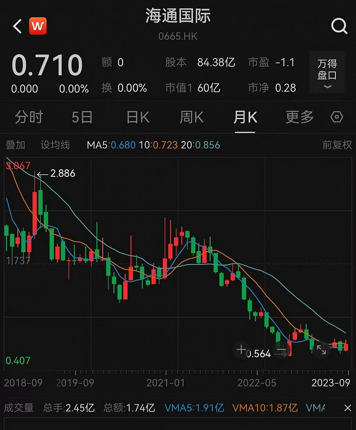 以海通国际最新的收盘价0.71港元计算,此次每股注销的计划股份现金1.52港元,溢价约114%。