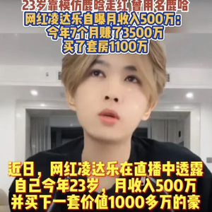 据扬子晚报,近期,主播凌达乐在直播中自称一个月赚500万,直言“有人说我火了就开始飘了,我已经在不断的压制住我的内心,当你站在我这个(位置)的时候,你会发现其实你飘得比我还厉害。23岁,一个月给你搞500万,你飘不飘。”