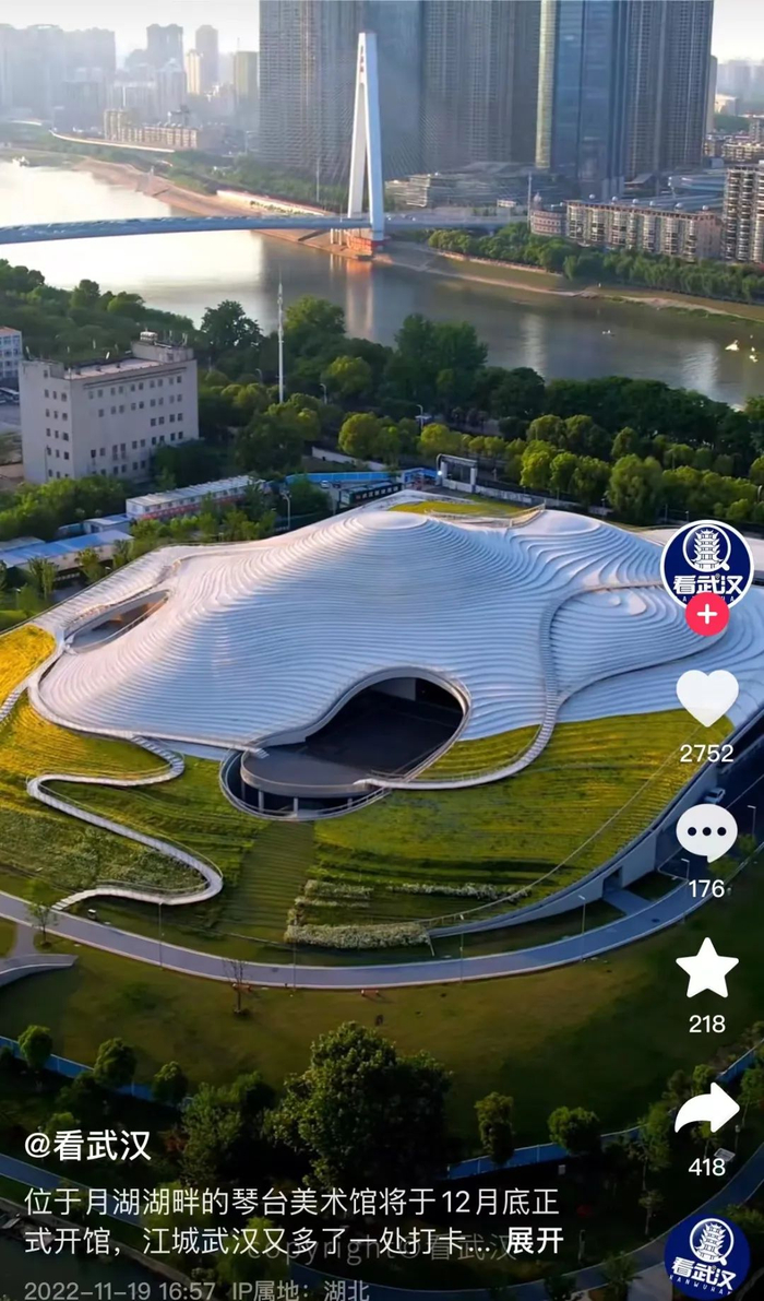 位于月湖湖畔的琴台美术馆,如同银色梯田,优美的线条散发着高山流水般的韵律,令人过目难忘。