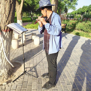 “其实,笛子更适合室内演奏。”有一次他告诉我:“今天的吹得不满意。”我问为什么?他说笛子上要贴一块薄膜,有风的时候容易干燥,音质不好。还有每天自己状况不一样,运送气的效果不一样,吹出来曲子干巴巴,没有韵味。不过也不可能天天在家里吹,会影响邻居们的生活。