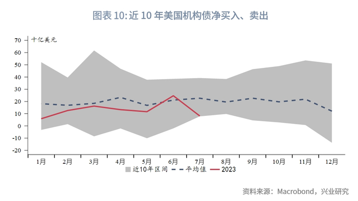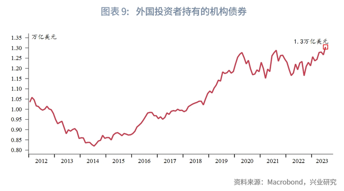 月度持有数据方面,外国投资者持有的美国机构债总量为1.3万亿美元,总持仓维持高位。