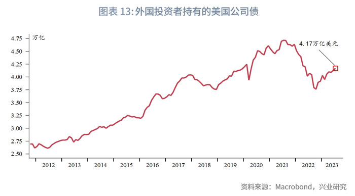 月度持有数据方面,外国投资者持有的公司债总量为4.17万亿美元,总名义持仓量距离持仓2021年的高点仍有较大距离。