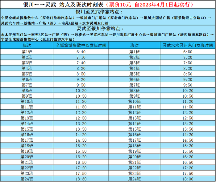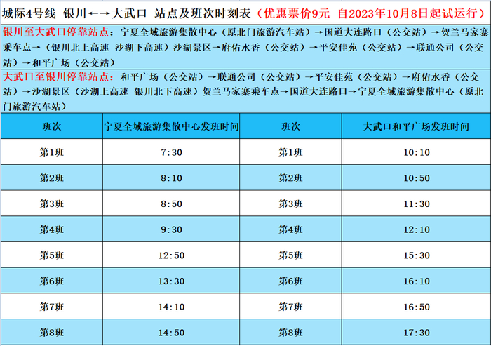 返程始发站:大武口和平广场公交,终点站:银川市清和街银川旅游汽车站公交;