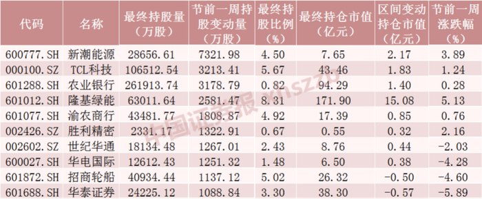 持股增加数、持仓市值增加额TOP10的个股如下↓