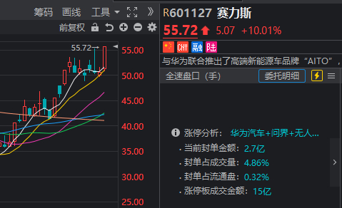 从赛力斯的股价走势也不难看出,资金目前对该板块不缺炒作热情,赛力斯本身也是“龙头基因”浓厚,因此节后表现值得期待。