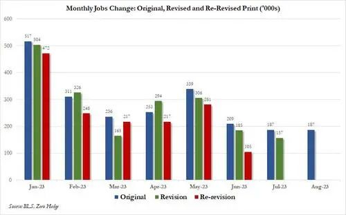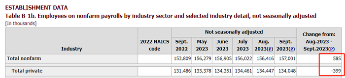 然而两天后美国劳工部实力打脸,不仅宣布了美国2023年9月新增非农就业人口33.6万人,高于市场预期的17万人以及前值22.7万人,还将7月和8月新增非农共上修11.9万人。