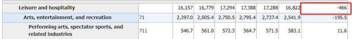 回头来看美国的这次非农报告,可以看到在劳工部认为存在供需缺口的休闲和酒店业,9月的季调数据为就业增加9.6万人,是非农就业强劲的主力推手。但翻看未经调整的原始数据,可以看到9月这个数字是负46.6万,也就是说9月美国的文化旅游业实际失去了46.6万的工作岗位。