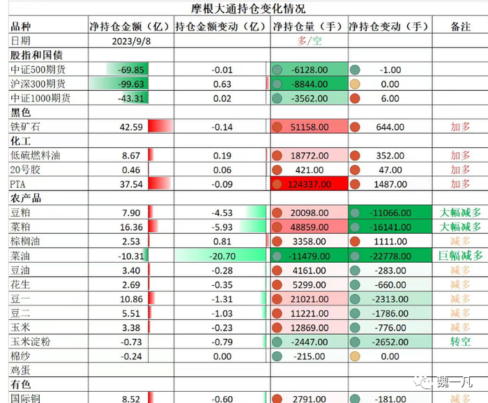我们看这是某研究团队整理的外资大摩的持仓,他们的中国期货持仓中: