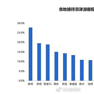 中秋国庆长假,北京游客在外省游客来源中排名第1位,天津游客排名第2位,京津游客总占比12.1%,其中,廊坊接待京津游客占比最高。
