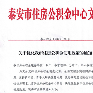 中国质量新闻网讯(周宁) 10月8日,泰安市住房公积金中心发布《关于优化我市住房公积金使用政策的通知》。