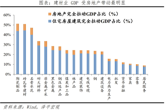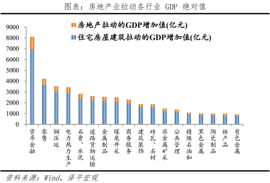 3)房地产带动60多个上下游行业。房地产通过投资、消费既直接带动与住房有关的建材、家具、批发等制造业部门,也明显带动金融、商务服务等第三产业。根据国家统计局最新的2020年投入产出表,我们估算出广义的房地产业完全拉动上下游GDP10.02万亿元、直接拉动上下游GDP2.35万亿元。