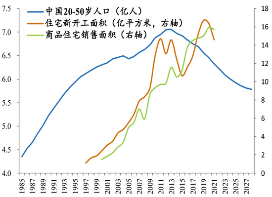 中国此轮房地产市场调整如此剧烈主要是长周期人口需求拐点出现。“长期看人口”,20-50岁置业人群构成住宅基本需求,决定长周期维度的房屋销售、新开工、投资等数据。日本20-50岁置业人群在1990年前后到达峰值,随后大幅下降,所以90年代初日本房地产泡沫破裂以后形成银行大量坏账,居民和企业陷入通缩-债务循环,也就是当下热议的资产负债衰退,日本经济失去30年。