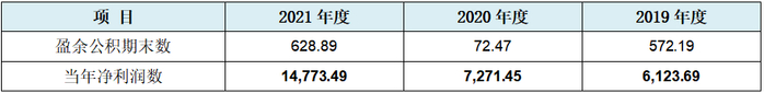 发行人资产负债表披露的盈余公积期末数与当期净利润的比较情况见下表: