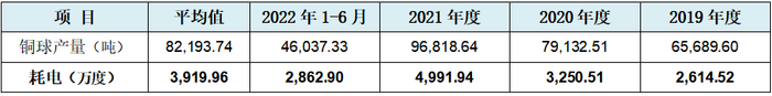 由于发行人铜球生产工艺中涉及到电炉加热,发行人作为一个高能耗企业,其满级能耗与大量冷墩机和低人工、制费不匹配为第三个漏洞。发行人披露的电耗和铜球产量数据,二者如下表所示: