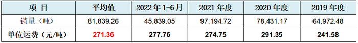 招股书披露的发行人铜球销量和单位运费情况,具体见下表: