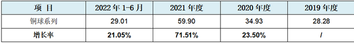 发行人披露的核心业务磷铜球收入额及增长率情况见下表: